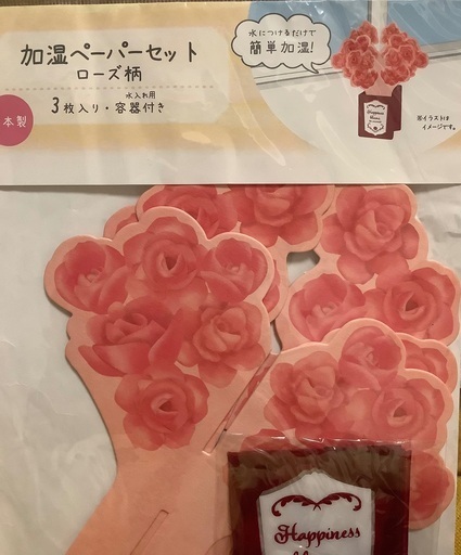 - 【新品!】加湿ペーパー 花束 ローズ柄 花柄 ピンク系 カップ付き 室内加湿 インテリア 肌うるおい