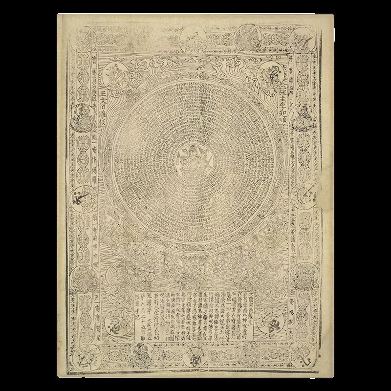 - 絵絹 仏説 即得大自在 陀羅尼神呪経曼茶羅梵文 表装なしチベット 密教 護符開運 風水お守り 厄除け 装飾収蔵