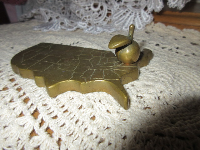 - ■珍品アンティーク■【アメリカ50州】のリンゴ付きペーパーウェイト/文鎮/置物■約314g■50年近く前にアメリカにて購入■