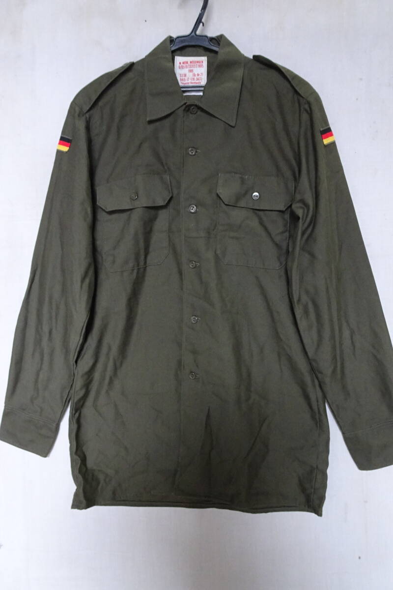 > ドイツ軍BDU/バトルドレスユニフォーム/ユーティリティーシャツ/長袖/ミリタリー/両胸フラップポケット/緑系カーキ(11/18R7)