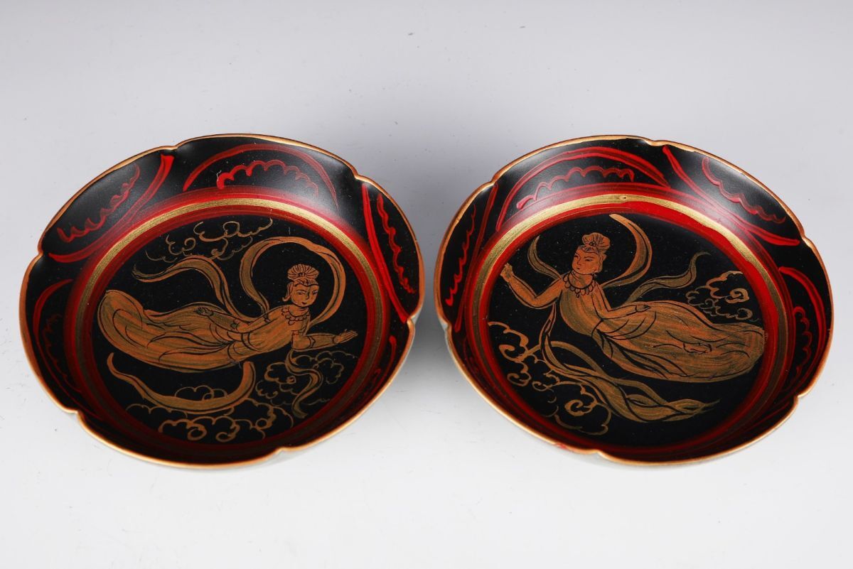 - 永し 宋時代 汝窯 大漆 飛天仙女図盤 一対 古陶磁器 陶芸 皿 中国陶瓷器 唐瓷 置物擺件 古美術品 古賞物 収集 旧家蔵出 中国唐物 A686