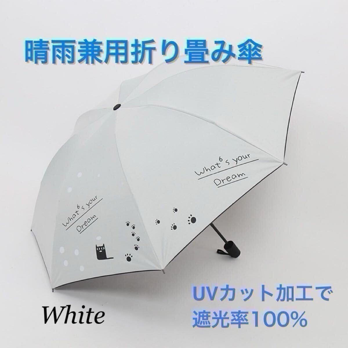 - 折りたたみ傘 猫柄 晴雨兼用 ホワイト 日傘 雨傘 UV対策 コンパクト傘 折り畳み傘 晴雨兼用 日傘