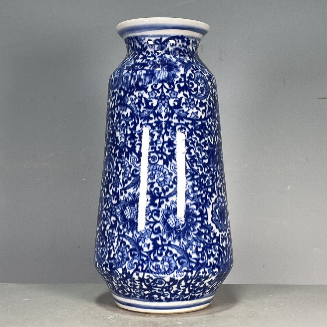 - 景徳鎮 大清雍正年制青花卉図紋賞瓶置物 磁器 置物