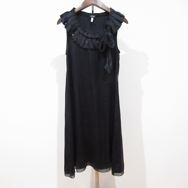 - #snc アルマーニジーンズ Armani Jeans ワンピース 36 黒 ノースリーブ シルク スパンコール フリル レディース [895984]