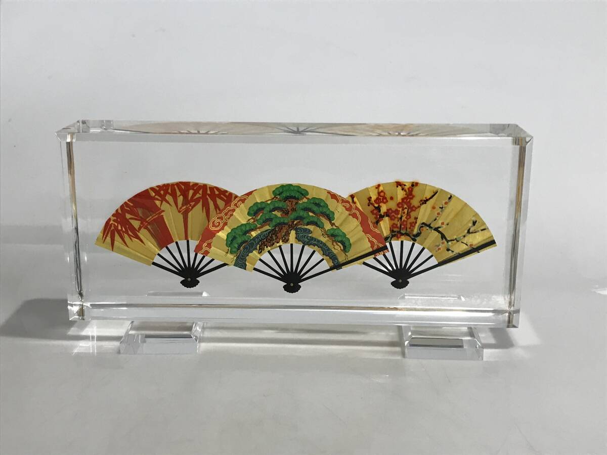 - HG8987 高級 インテリア アクリル 飾り扇子 松竹梅 日本製 専用亀甲紙箱入り 現状品