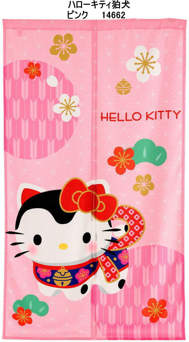 - サンリオのれん 本縫いのれん85センチ×150センチ/ハローキティ 狛犬 ピンク14662-naru