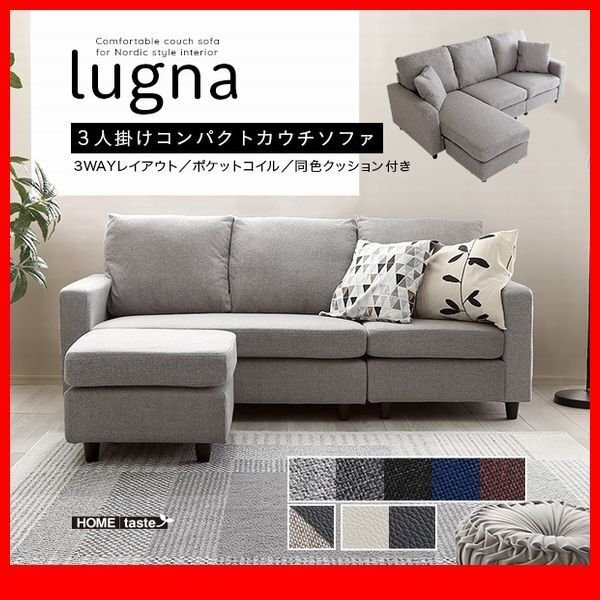 - ソファ★北欧インテリア 3人掛け コンパクトカウチソファ/布地 PVC ポケットコイル S字バネ 天然木脚/黒 青 赤 グレー ベージュ/zz