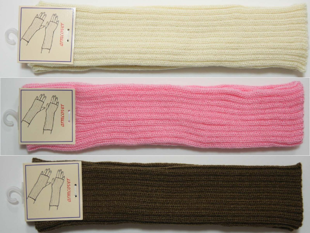 > 送料無料◆3色組◆アームウォーマー◆親指穴付き◆防寒◆無地◆リブ編み◆あったかアームカバー(クリームベージュ&ライトピンク&ブラウン