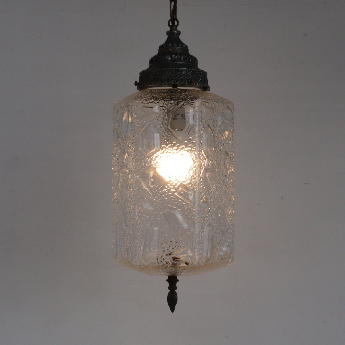 > ヴィンテージ クリアガラス ペンダントライト / アメリカ アンティーク 吊り下げランプ カフェ 照明 シーリング#510-10-101-336