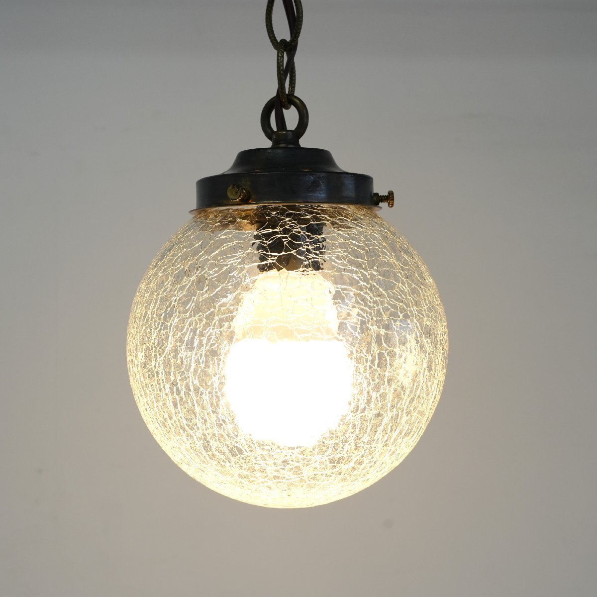 > 60s ヴィンテージ クラックガラス ペンダントランプ/アンティーク カスリガラス ヒビ加工 吊り下げランプ 照明#702-45-266-689