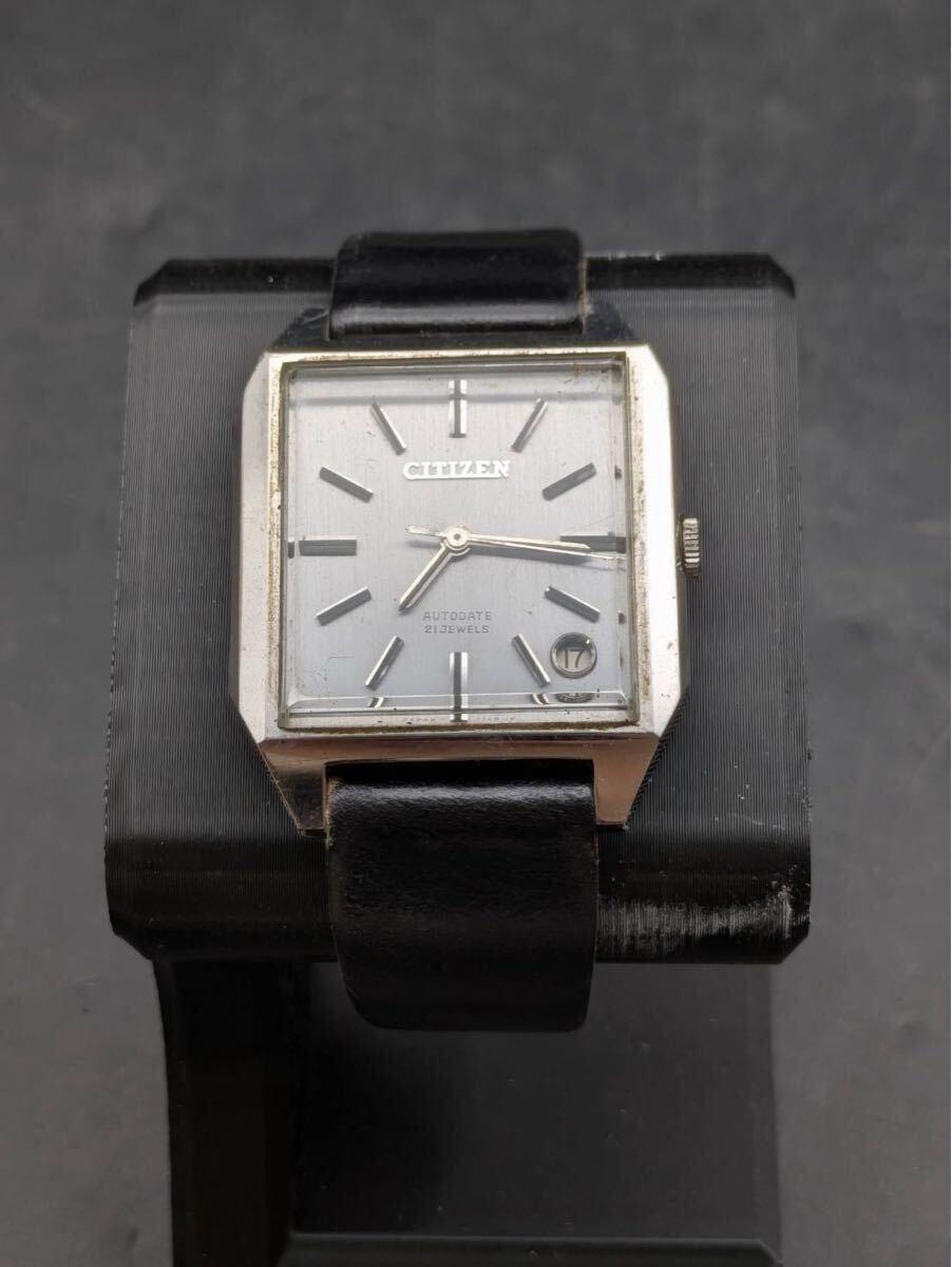 > 杉本 11月 No.33 CITIZEN シチズン 腕時計 AUDS 52301-Y AUTOMATIC AUTODATE 21石 稼働あり スクエア ベルト劣化 汚れ傷錆あり
