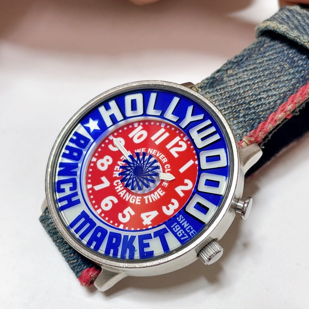 - 即決 送料無料 中古品★ハリウッドランチマーケット HOLLYWOOD RANCH MARKET ネオンウォッチ 腕時計 ブルー レッド クオーツ 稼働品