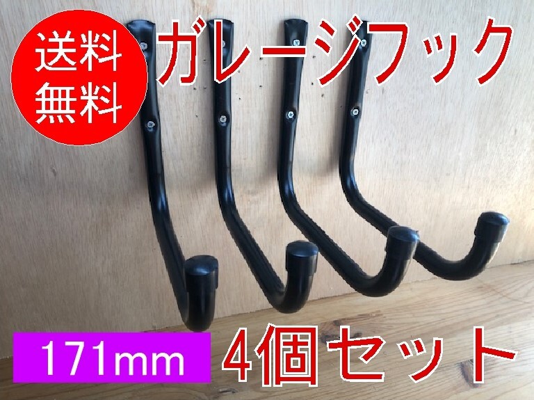 > 【4個セット】ガレージフック 奥行171mm 大型 収納フック 壁掛け収納 金属製 L字型 J型 ラダーハンガー 壁用フック