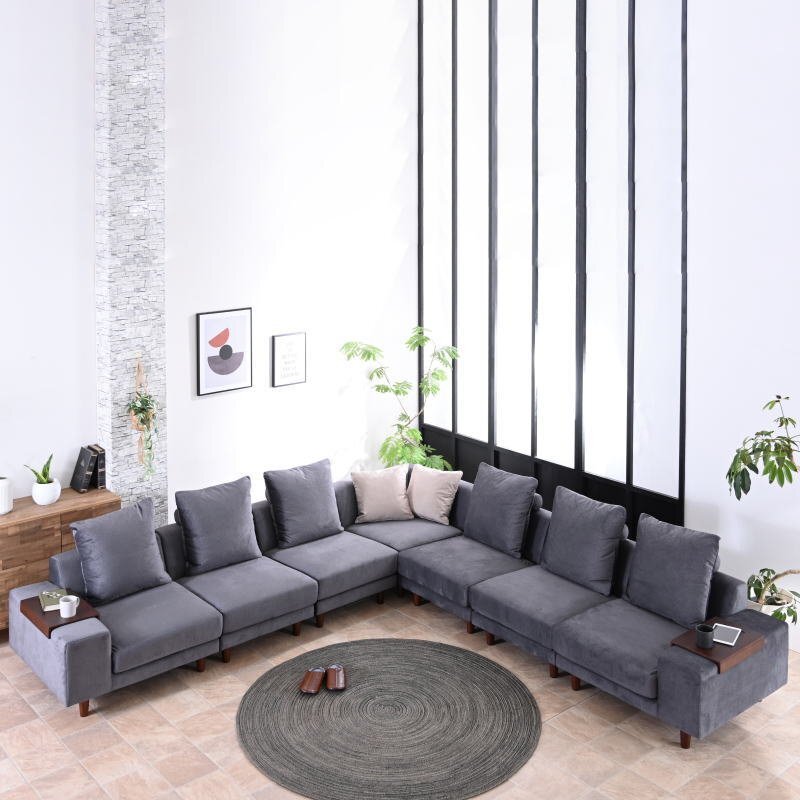 - 新品 一時撥水 傷に強い ファブリック張り コーナーソファー ダークグレー 7点セット リビングソファ 応接 L字型 DGY 布製 大型:ST11-48W02
