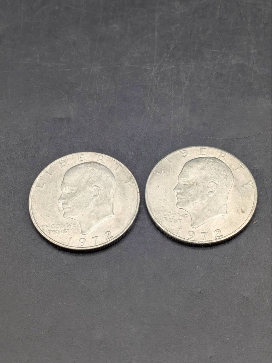 - 春名 11月 No.94 外貨 2枚 アイゼンハワー 1ドル 1972年 アメリカ ONE DOLLAR コイン コレクション 汚れあり