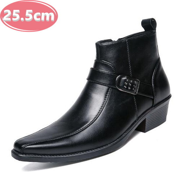 - メンズ PUレザー ブーツ シューズ ブラック 25.5㎝ 革靴 靴 カジュアル 屈曲性 通勤 軽量 インポート品【n148】