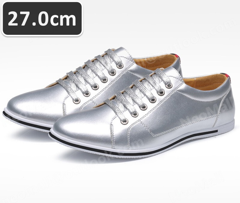 > メンズ カジュアル スニーカー シルバー サイズ 27.0cm 革靴 靴 カジュアル 屈曲性 通勤 軽量 インポート品【n044】