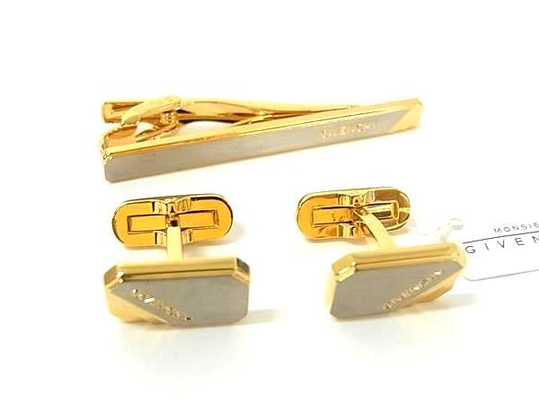 > ■極美品■ GIVENCHY ジバンシィ ネクタイピン タイクリップ カフリンクス カフスボタン アクセサリー 2点セット ゴールド系 DI7843
