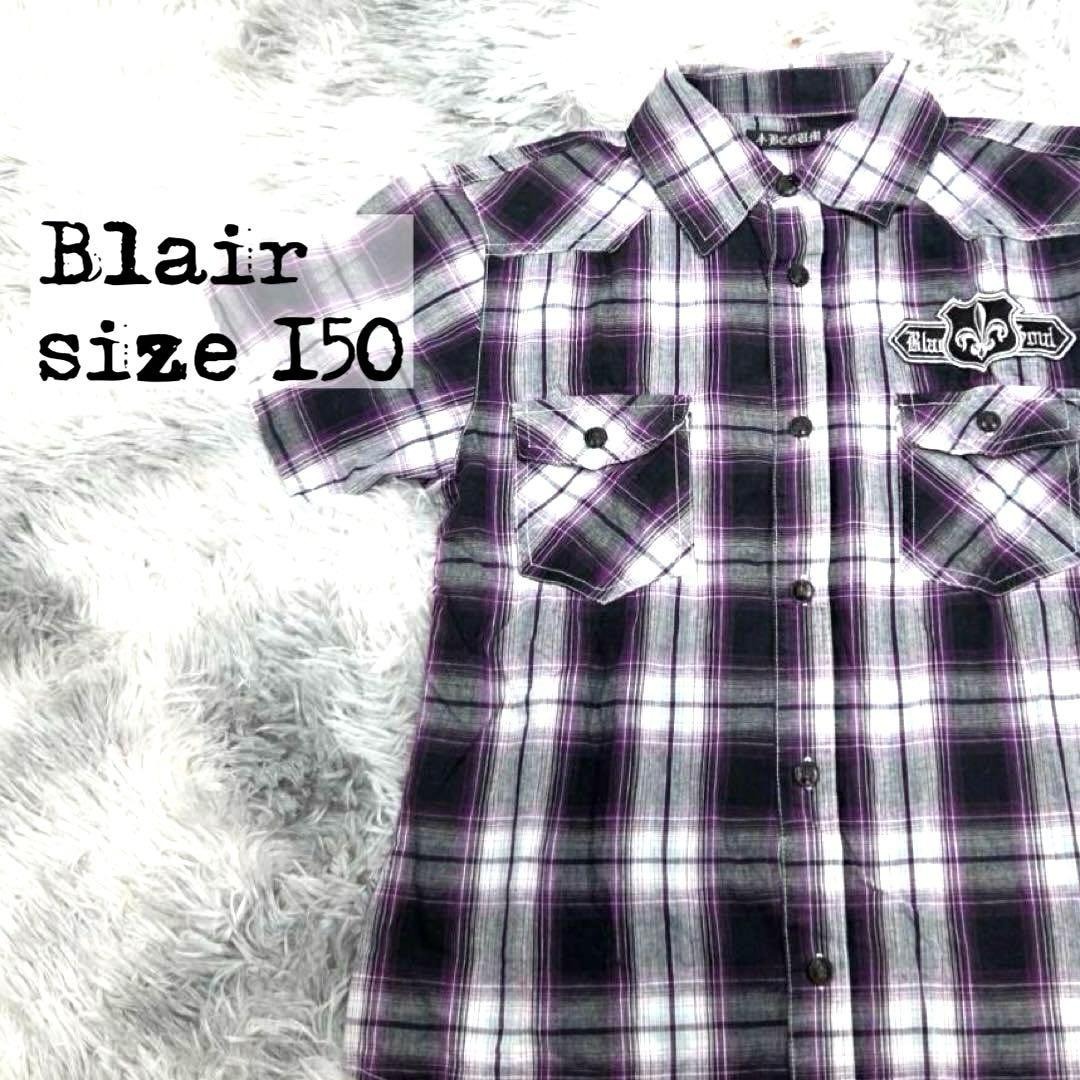 - Blair ブレア チェック柄 半袖 シャツ パープル ブラック 150サイズ