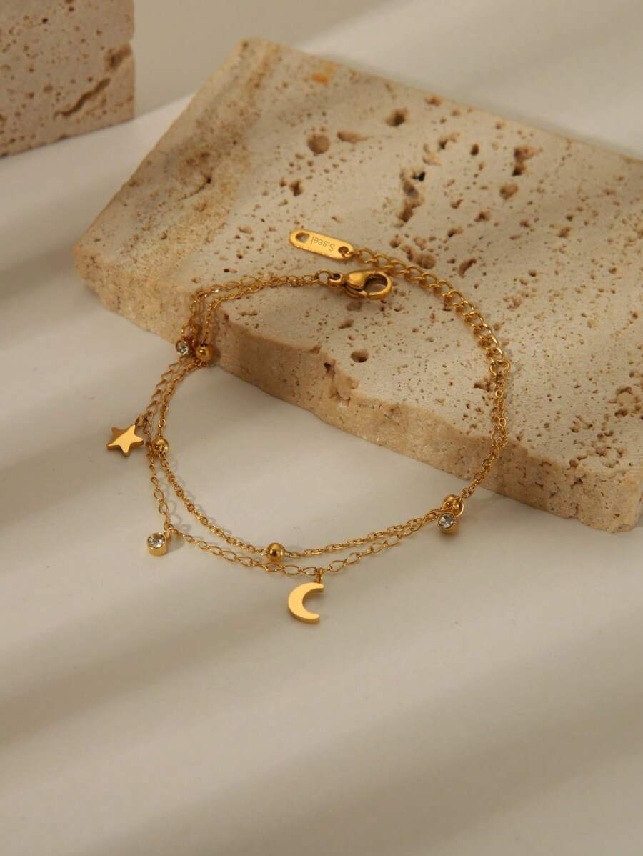 > ジュエリー レディース ブレスレット チェーン ミニマリスト風 ステンレススチール 18K キュービックジルコニアスターダブルレイ