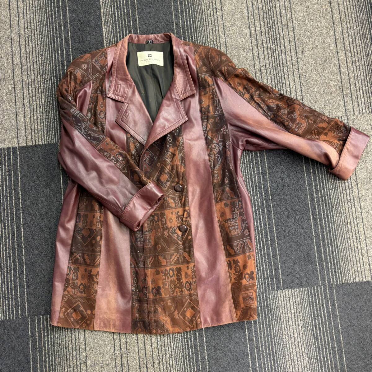 - 【T1102】PIERRE BALMAIN paris ジャケット レザー レッド アンティーク レトロ 古着 ファッション 洋服 アウター