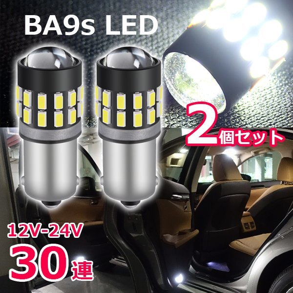 > BA9s LED 30連 2個セット 爆光拡散 ホワイト 12V 24V 無極性 G14 6500K ポジション ナンバー灯 ルームランプ 3014チップ LEDバルブ