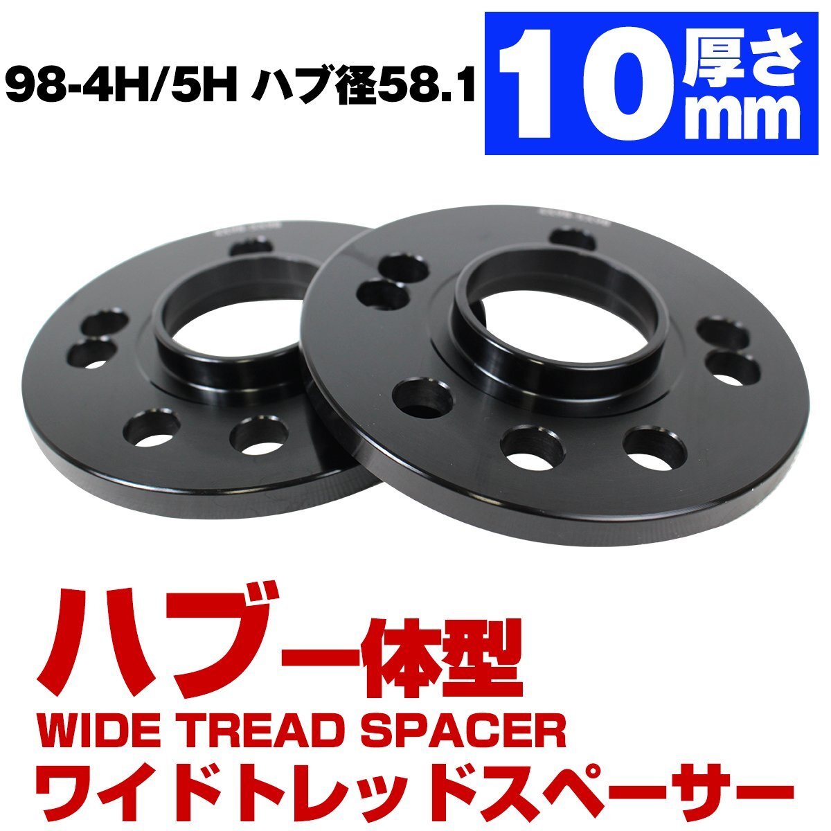 - ハブ一体型 厚さ 10mm 4穴 4H PCD 98 ハブ径 58.1mm M12 P1.25 ワイドトレッド スペーサー ブラック