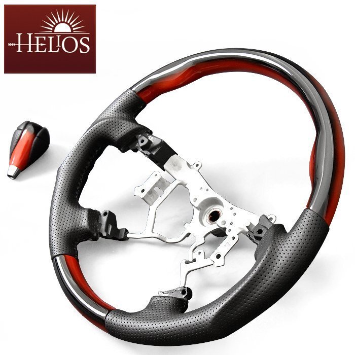 > HELIOS 200系 ハイエース 4型 5型 6型 7型 8型 ガングリップ ステアリング & シフトノブ レッド×ブラック グラデーション 内装 トヨタ