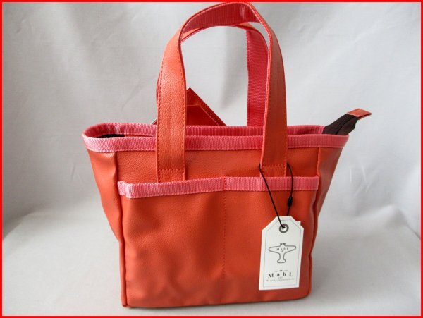- MahL +81/マール◇ハンドバッグ 抗菌バッグ ミニケース付 ピンクオレンジ 未使用 W31cm