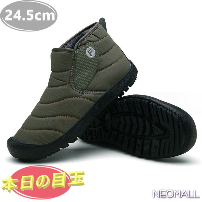 - ユニセックス スノーシューズ 【869】 24.5cm オリーブ ムートンブーツ スニーカー ウィンターブーツ 裏起毛 防水 防寒 防滑 冬用靴 綿靴