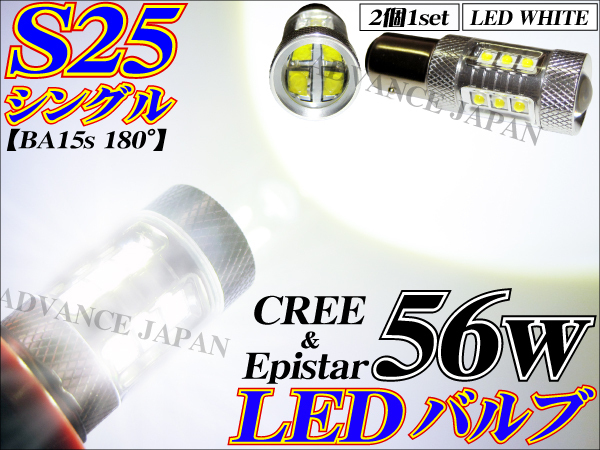 - 送料無料 S25 LED シングル BA15s 180度 CREE&Epistar LED 56w ホワイト 2個 バルブ テール バックランプ ライト白 80w同等品質