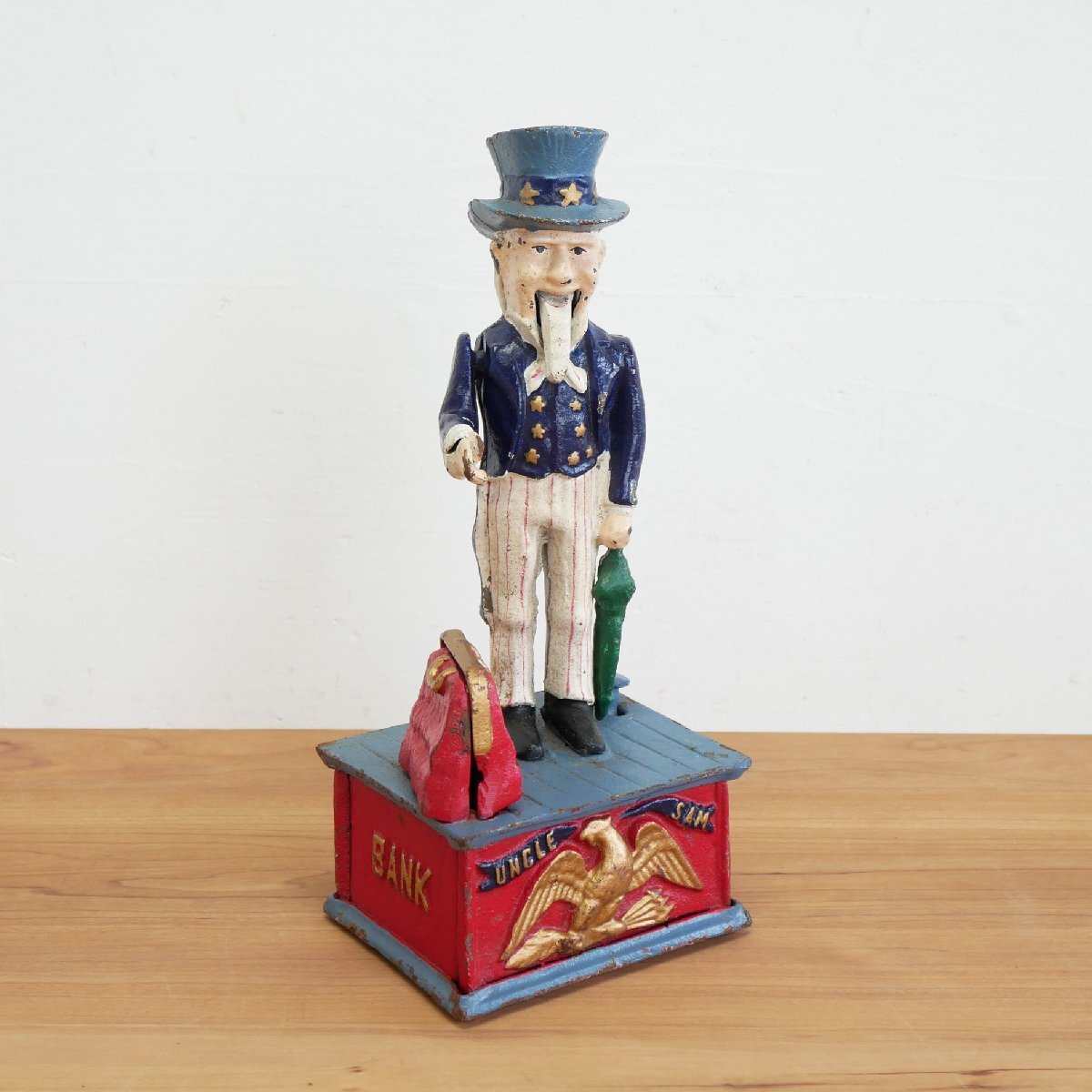 - アンクルサム 貯金箱 鋳鉄製 / アメリカ ヴィンテージ キャストアイロン コインバンク 人形 B品 #610-10-230-348