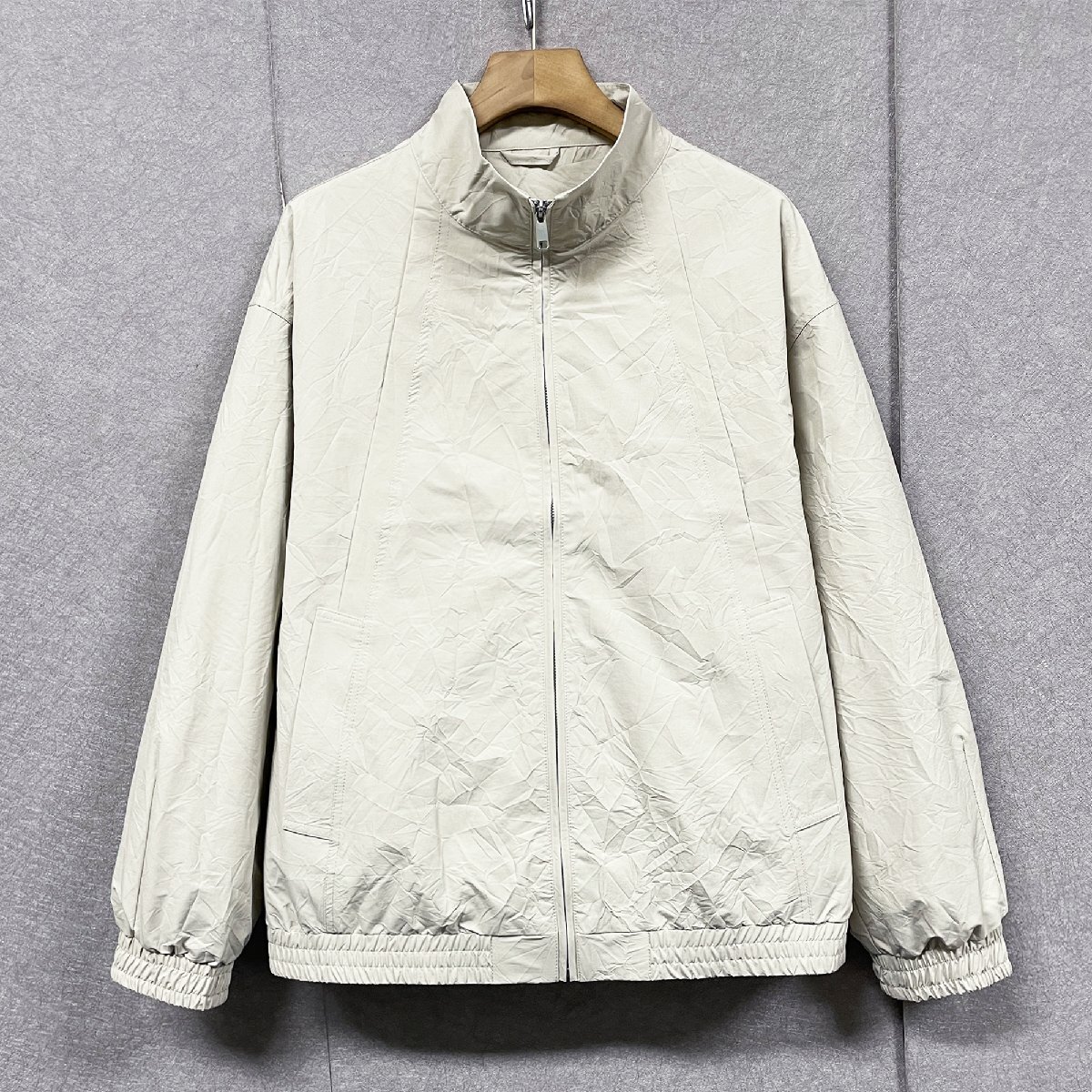 > ジャケット イタリア製造 ポリアミド100% 快適 速乾 ソフト 防風 無地 折り襟 ゆったり ブルゾン アウター メンズ カジュアル 秋 SIZE:XL