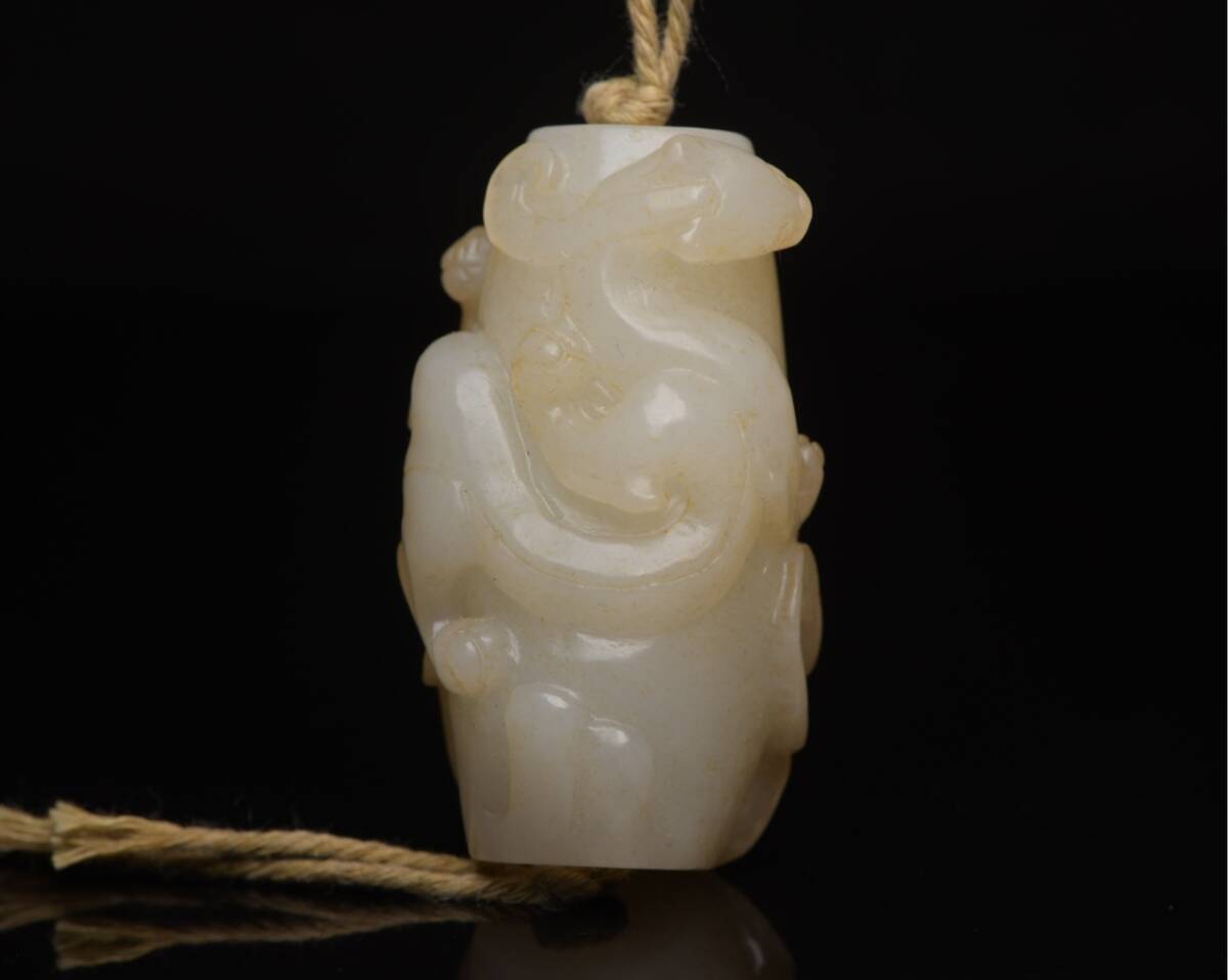 - 旧蔵 和田玉彫 龍勒 根付 中国古玩 骨董品 時代物 稀少唐物