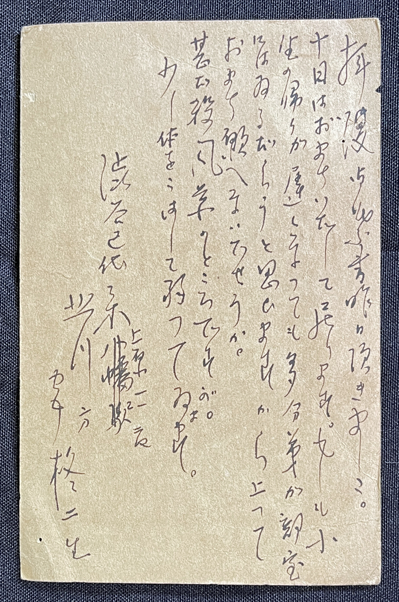 - ◆宮柊二 肉筆葉書 昭和10年 歌人/北原白秋門下/戦後短歌のリーダー/新潟県魚沼出身 書簡・手紙