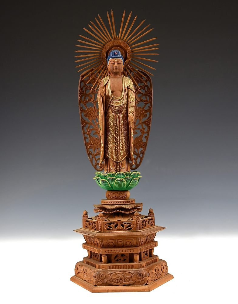 ▲▼▲▼▲▼▲▼▲▼▲▼▲▼▲▼▲▼▲▼▲▼▲▼▲▼▲▼◎木のいい香りがします。光背の棒の内1本が欠損しています。 【大きさ】全高:36.5cm 【発送方法】 ゆうパック Bサイズ 【 まとめて購入 のご利用について 】・ヤマトらくらく便は、まとめて購入されても同梱できない為、一点ずつの送料を頂きます。 ・西濃運輸、佐川急便は同梱できる商品のみ まとめて購入できますが、個々対応となりますので 細かい送料確認されたい方は、事前に質問をお願い致します。・お支払いは、商品+送料+消費税となります。 ・送料はサイト内の送料表でご確認下さい。 ・撮影時にはなるべくイタミがわかるように撮影しています。 ・時代のある商品は 経年による使いスレや小さなキズがある場合があります。 ・気になる点はお気軽にお問い合わせください。 ・お使いの端末環境により色合いが違う場合がございます。 ・題名等は前所有者・委託者や張札を参考にしており確定するものではありません。 ・弊社では公的な鑑定書をお付けすることは出来ません。 ・お客様の主観による返品は受け付けません。 ・ご購入の際は必ず取引事項をご確認下さい。 ・弊社では自社サイトや店頭販売も行っており、販売の時間差や定休日により商品が 欠品する場合がございます。 ▲▼▲▼▲▼▲▼▲▼▲▼▲▼▲▼▲▼▲▼▲▼▲▼▲▼▲▼
