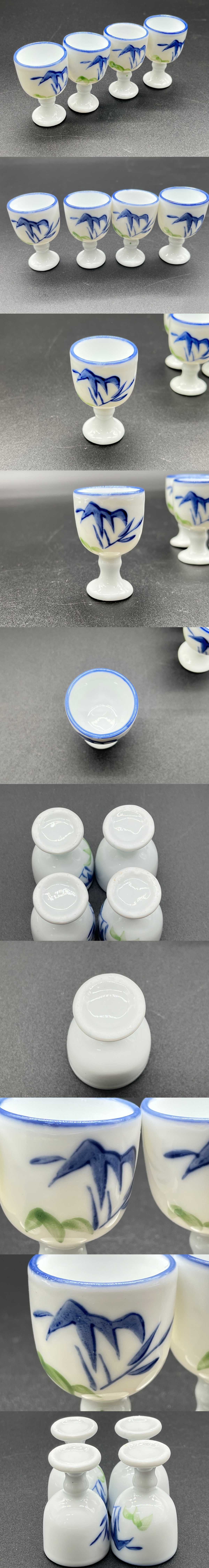 - 染付 高足杯 笹 猪口 4客 直径3.3×高さ5.5㎝ 26g 盃 ぐいみ 中国美術 酒杯 酒器 (20301)