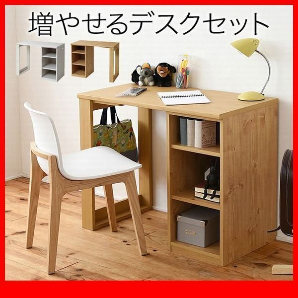 - 机★コンパクトデスクシリーズ ラックタイプ/学習デスク 事務デスク 子供から大人まで/収納ラック 木製 可動棚 背面化粧/ナチュラル 白/zz