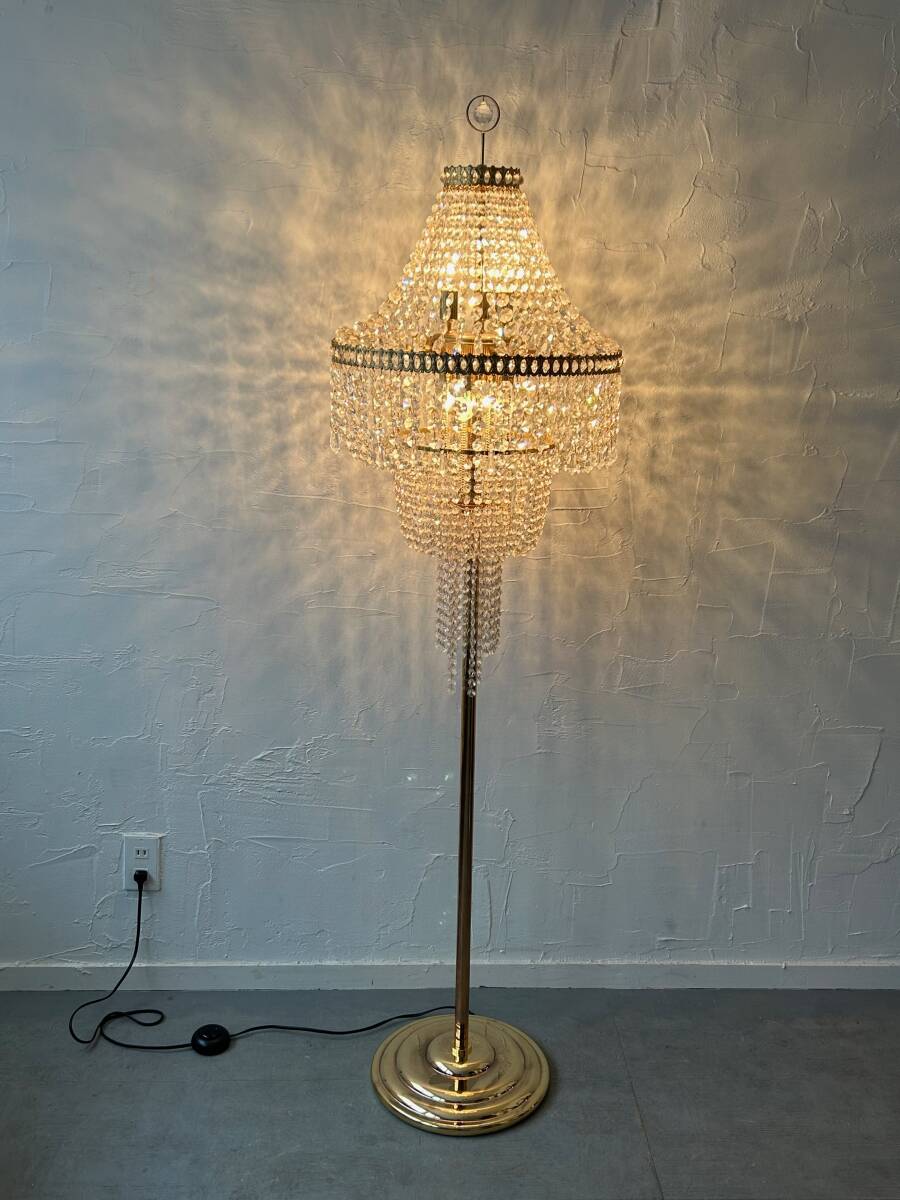 - ヤマギワ製 フロアスタンド シャンデリア ライト ランプ/検索用→ クリスタルガラス ゴールド 高級 ゴージャス 照明 エンパイア