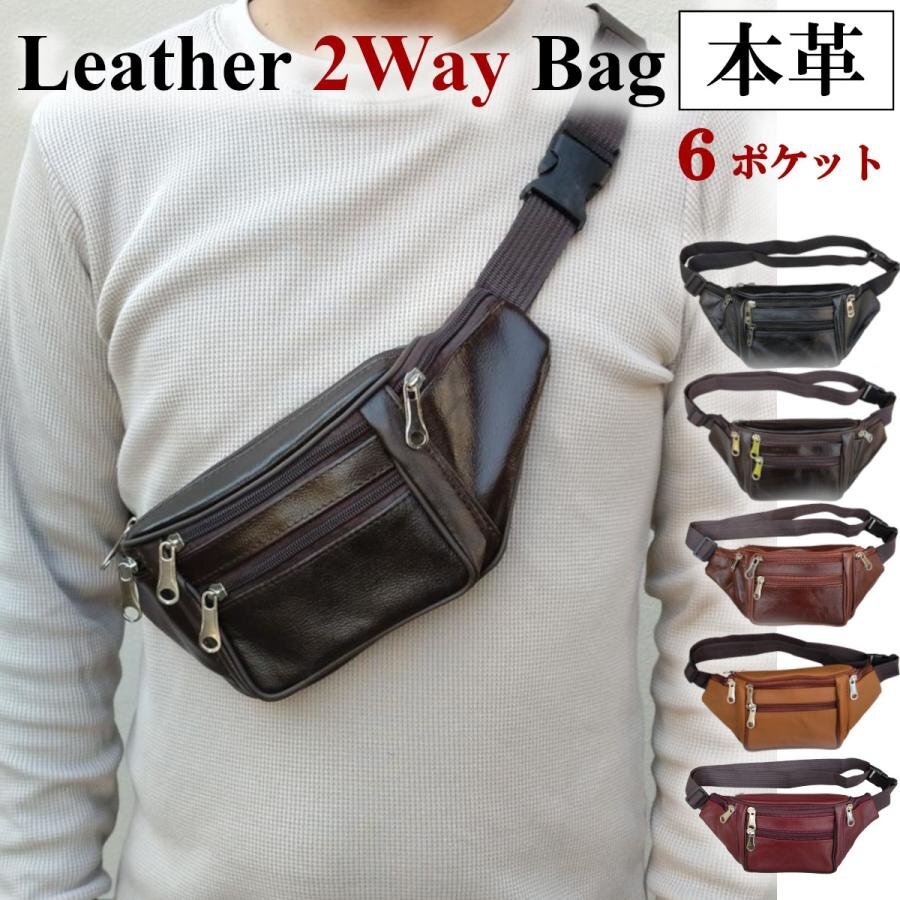 - ボディバッグ メンズ 本革 革 小さめ レザー 大容量 ウエストポーチ ウエストバッグ 牛革 本皮 斜めがけ バッグ 茶色