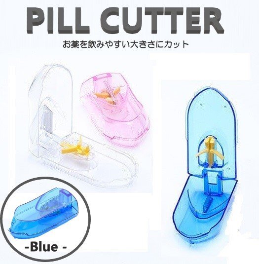 - ピルカッター ブルー 錠剤カッター 固定台付 錠剤ケース 携帯薬入れ ピルケース サプリメントケース