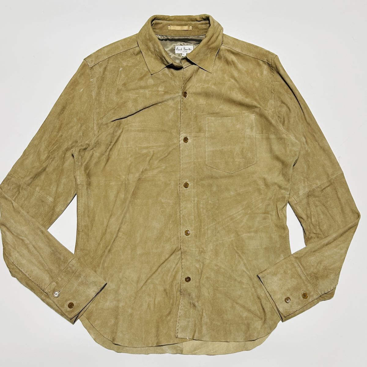 - 希少/Lサイズ★Paul Smith【極上のラムレザー】ポールスミス 羊革 BDシャツ ジャケット 本革 アウター メンズ キャメル ベージュ スエード