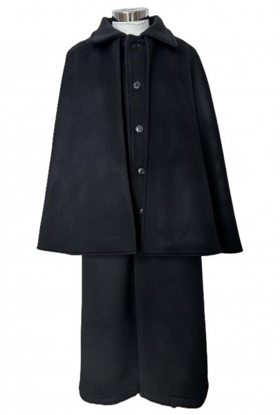 - 【1000円スタート|尾州ウールビーバー】LUSHIAN工房製 新品 インバネスコート|日本製ケープコート|和装・洋装兼用|黒 (a7403)