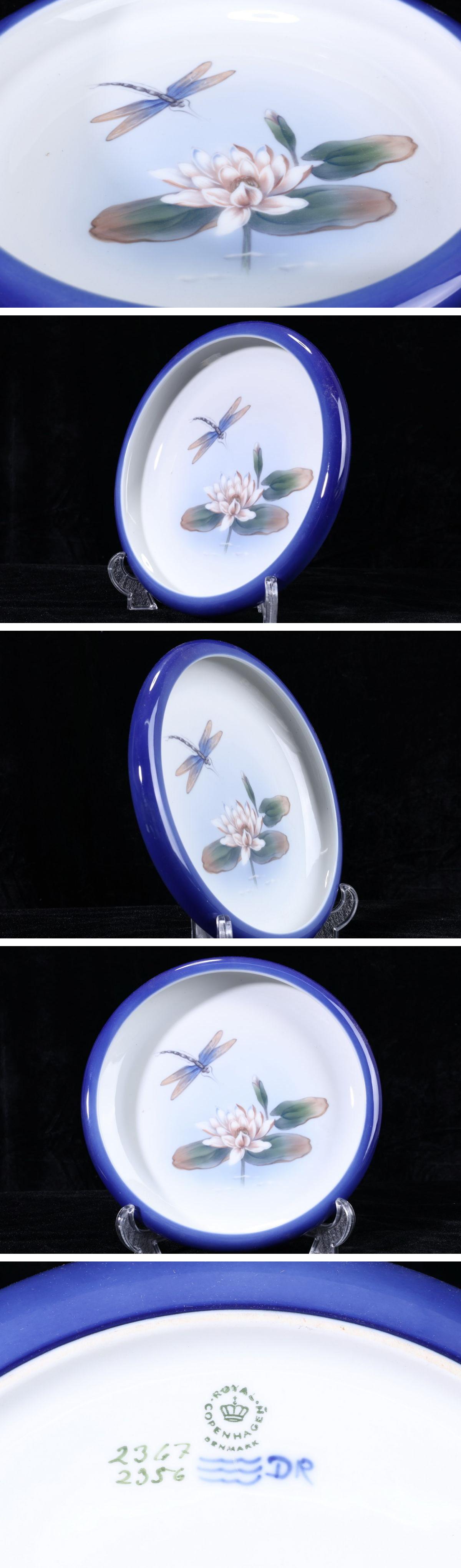 > 【珍品堂】1円から N82-V20 ロイヤルコペンハーゲン 蓮 トンボ プレート 径24㎝ 皿 洋食器 美品 人気 コレクション 時代物 工芸品 骨董