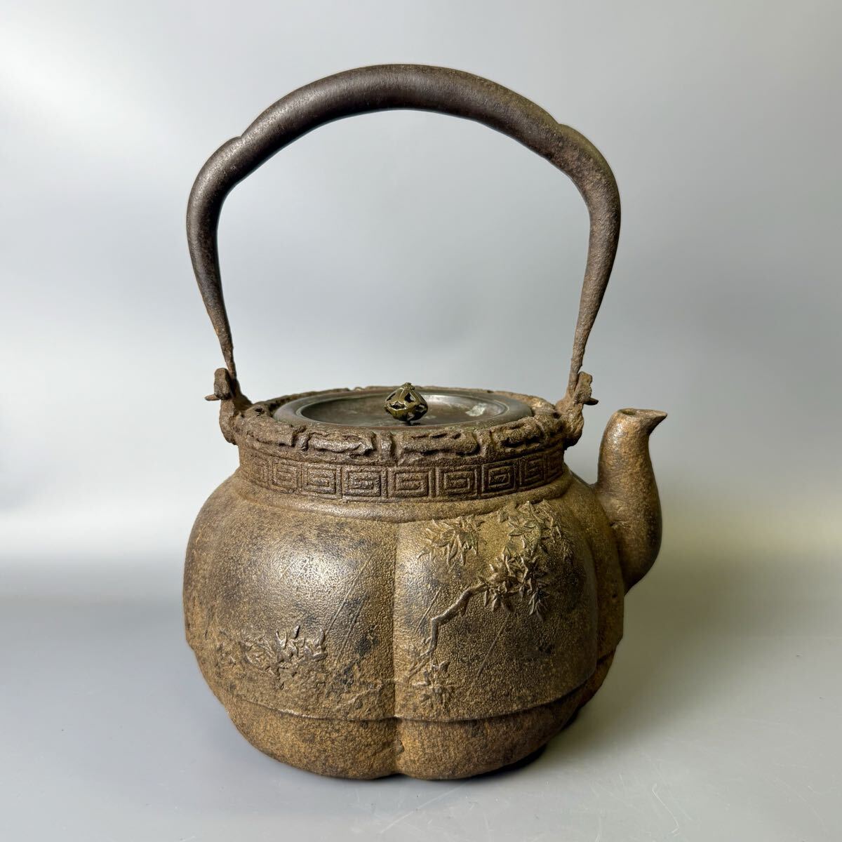 - 金龍堂 造 南瓜 瓜形 鉄瓶 煎茶道具 銅蓋 茶器 古美術