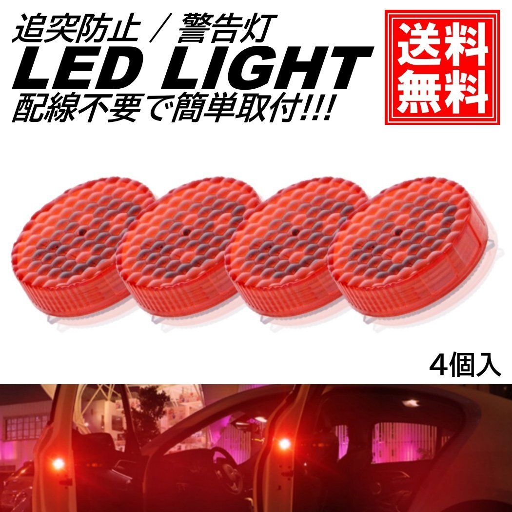> 赤色 配線不要 LED警告灯 レッド ドアストライカー 点滅灯 追突防止 ドア開閉作動 自動センサー 電池式 マグネット式 4個入