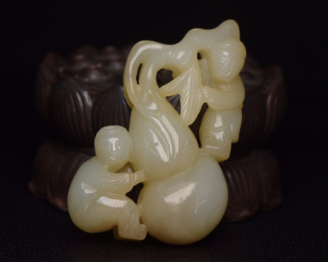 - 旧蔵 和田玉彫 葫芦 根付 中国古玩 骨董品 時代物 稀少唐物