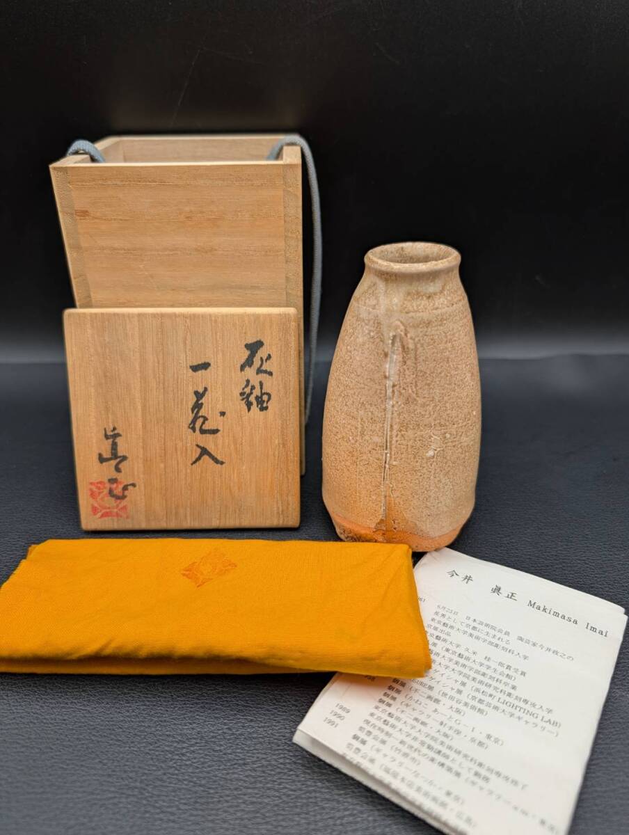 > H/K 未使用『今井 眞正 一花入 花器』茶道具 華道具 一輪挿し 作家 銘 在銘 陶印 裏印 骨董 日本 伝統 工芸 陶芸 陶磁 飾り物 インテリア