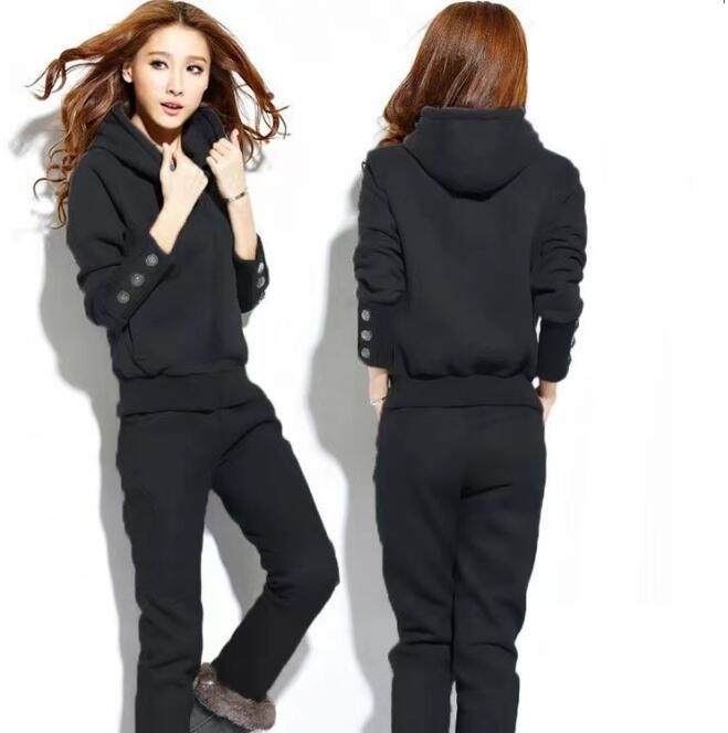 - 新入荷スウェット ジャージ レディース カジュアル 上下セット 厚手 防寒 ルームウェア 部屋着 無地黒