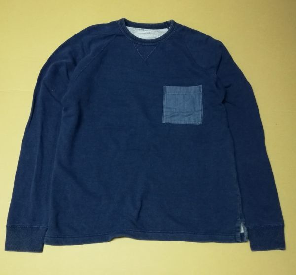 - インディゴ 前V ラグラン 胸ポケ付き トレーナー ボックスシルエット 表M